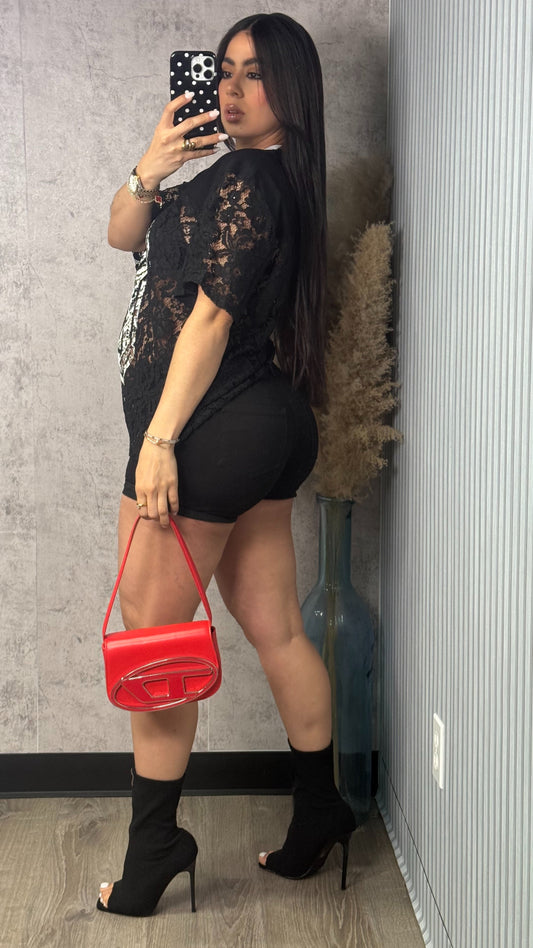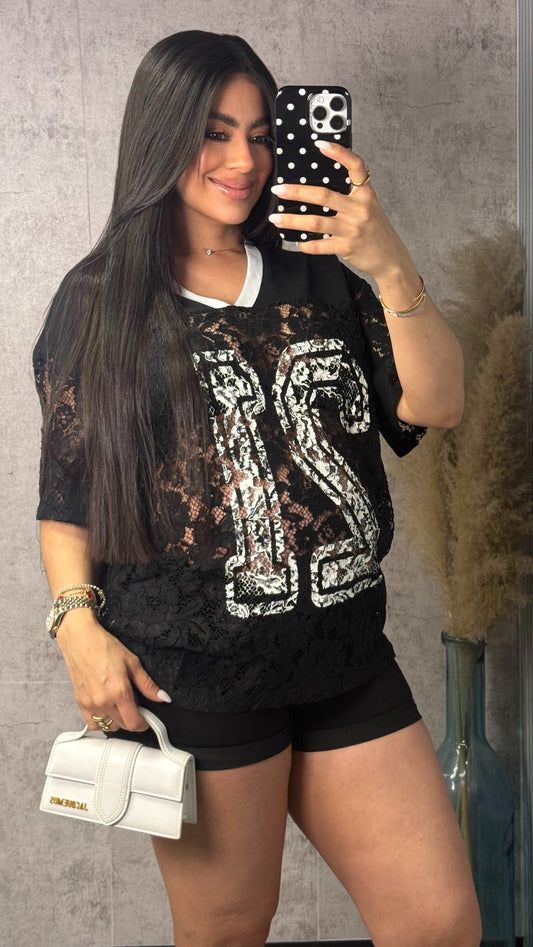 Sold outOVERSIZED JERSEY LACE TOP BLACK