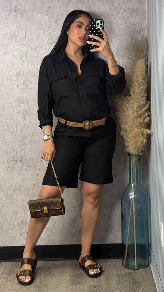LINEN BLACK PANTS SET AND BELT